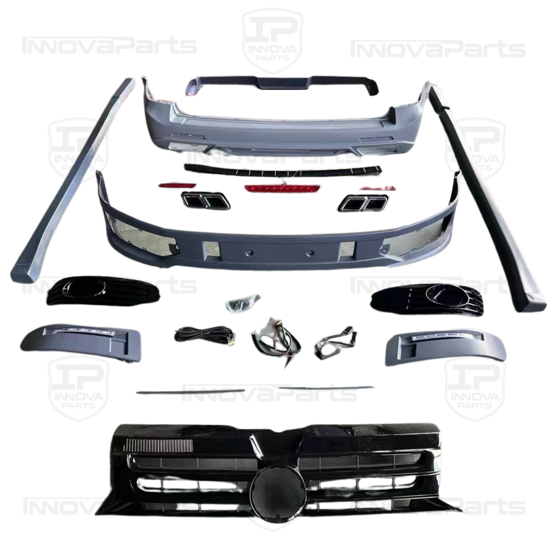 El kit está fabricado en plástico ABS de alta calidad, lo que garantiza resistencia, durabilidad y un excelente acabado. Incluye paragolpes delantero y trasero, así como parrillas, molduras y todos los elementos visibles necesarios para una instalación completa. Gracias al sistema plug and play, las piezas se instalan fácilmente utilizando los anclajes originales, sin necesidad de cortes o adaptaciones adicionales.
