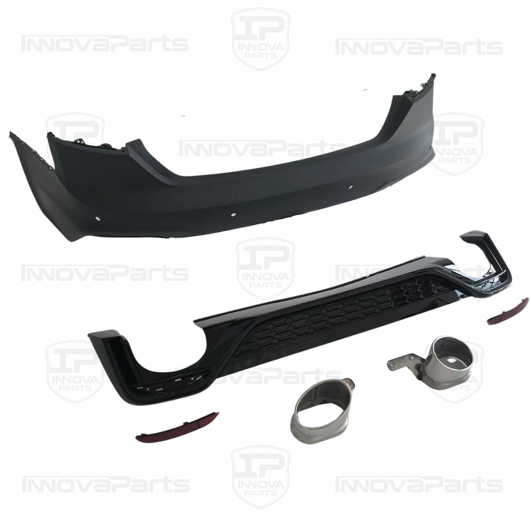 Paragolpes trasero compatible con Audi A5 Sportback y Coupé a partir del año 2020, diseñado para ofrecer una actualización estética estilo RS5 con una instalación rápida y precisa. Gracias a su sistema plug and play, no requiere modificaciones ni adaptaciones en la carrocería del vehículo.